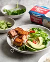 Glazed tofu with sugar snap pea salad for Minute Rice